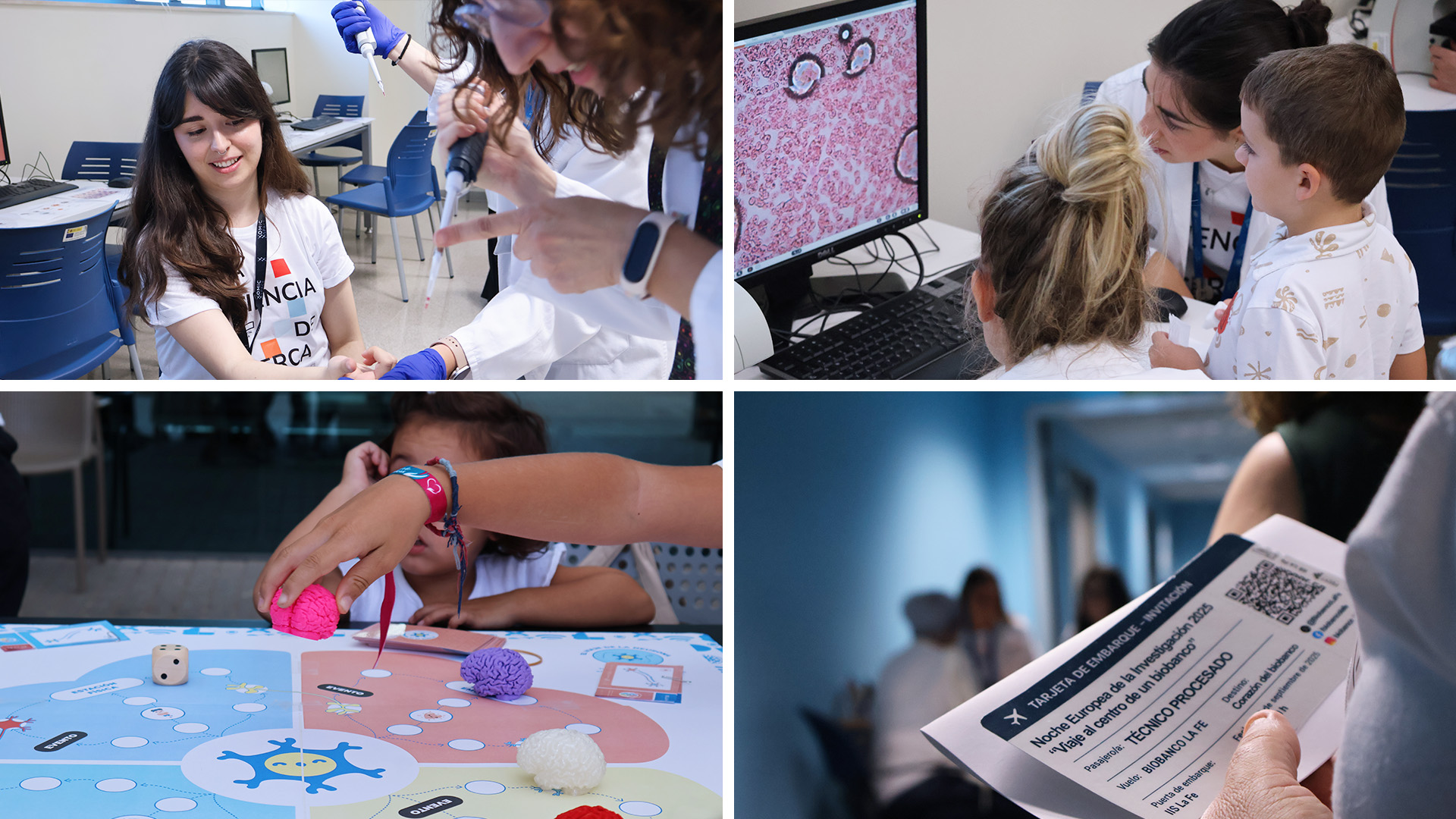 The programme featured a wide variety of participatory activities, thanks to the collaboration of platforms, management areas, and research groups involved in its design and execution. This year, researchers and managers presented activities such as: Journey to the Heart of a Biobank (Biobanco La Fe); The Laboratory Animal: Why and How They Are Used in Research (Experimental Surgery and Animal Models Platform, PCEMA); The Neuron's Journey (TEMET-HD Trial); Mission: Magical Data (Big Data, AI, Biostatistics, and Bioinformatics Platform); PCR: Copying and Amplifying DNA to Make It Visible; Blood Under the Microscope Lens (Cell Biology Platform); C. elegans, a Small but Great Ally for Research (Molecular, Cellular and Genomic Biomedicine Research Group); and Alzheimer's: Myths and Realities (Alzheimer's Disease Research Group, GINEA).