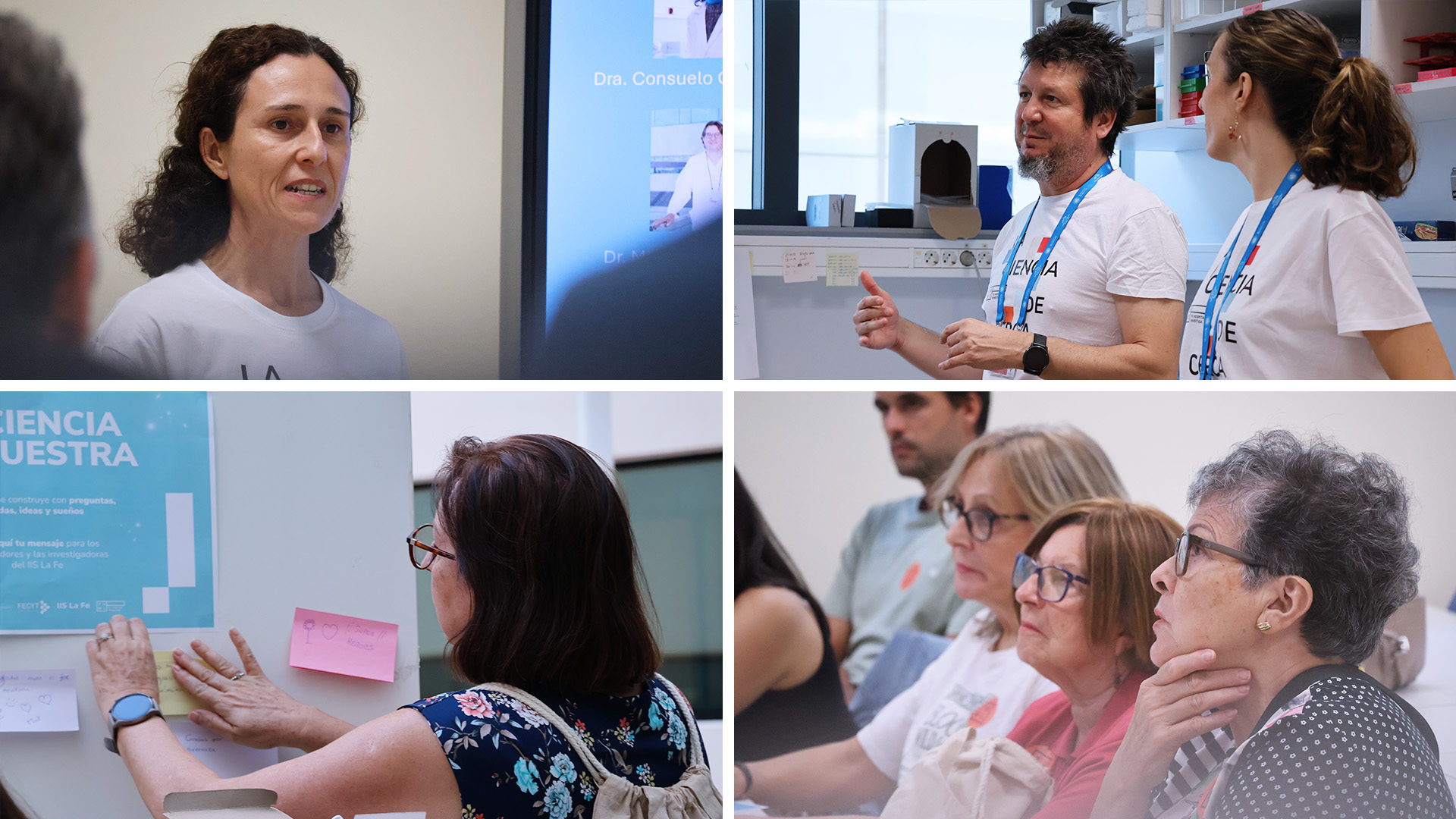 The event, which gathered more than fifty attendees of very diverse ages, allowed participants to see first-hand how their support is transformed into scientific progress. During the opening session, Mariola Penadés, Director General for Research and Innovation, and María José Carrión, Managing Director of IIS La Fe, emphasized that social support is an essential driving force behind translational research and that every citizen contribution has a real impact on generating new knowledge.