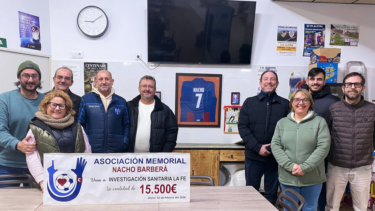 El Instituto de Investigación Sanitaria La Fe (IIS La Fe) ha recibido una donación de 15.500 euros por parte de la Asociación Memorial Nacho Barberà, correspondiente a la recaudación obtenida durante el año 2025 y destinada a apoyar la investigación en cardiopatías familiares y muerte súbita.