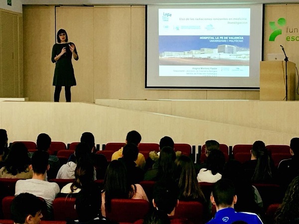 Por su parte, Alegria Montoro, del Grupo Investigacion biomédica en imagen (GIBI 2-30) charló con el alumnado de Bachillerato del colegio Santa Teresa de Jesús de Torrent sobre las radiaciones en el ámbito médico y sobre su experiencia como científica.